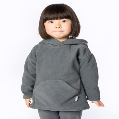 Felpa in pile per bambini oversize con cappuccio e tasca a marsupio. La soluzione ideale per un sottogiacca in inverno sotto tuta, giacca o gilet. Il pile morbido e spesso riscalda e rimane asciutto anche durante i movimenti più attivi del bambino, espellendo efficacemente l'umidità e il sudore, mantenendo asciutto e caldo.