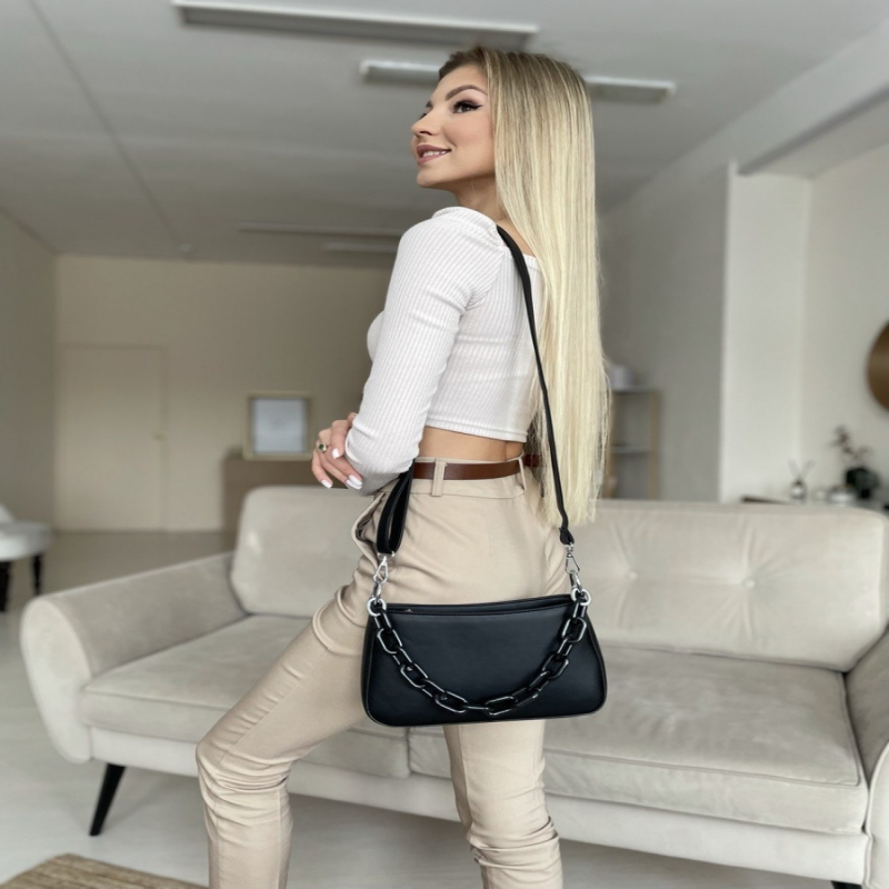 Se hai notato che la catena è leggermente sporca, basta pulirla con un panno umido. Una piccola borsa da donna a spalla. Una borsa molto elegante e insolita. Sono inclusici due cinturini: il cinturino classico è regolabile, il cinturino a treccia non è regolabile (standard). C'è anche un elemento decorativo a catena. La borsa può essere portata in tre modi: con il cinturino classico, con il cinturino a treccia, oppure può essere semplicemente portata a mano con la catena. La borsa è perfetta per passeggiate, lavoro e sarà anche un compagno ideale per ogni giorno. Un'opzione compatta, leggera e capiente per una borsa da donna.